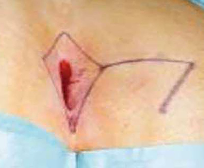 Es una de las técnicas más difundidas para el tratamiento del seno pilonidal sacro coccígeo. Es simple de realizar, confiable y cosméticamente aceptable. Es reproducible, incluso en cirujanos con poca experiencia en cirugía plástica (figs. 1 a 4).