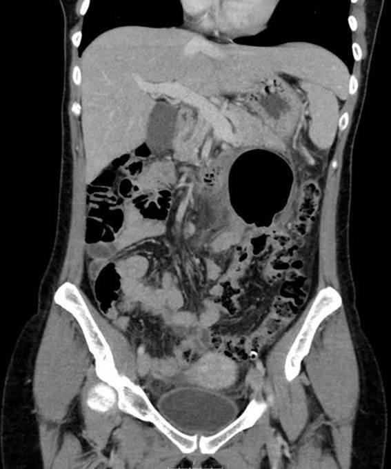 Clínicamente puede presentarse con una variedad de signos y síntomas, desde un hallazgo incidental en un paciente asintomático, hasta una presentación como tumoración abdominal, o incluso un abdomen agudo secundario a la perforación.