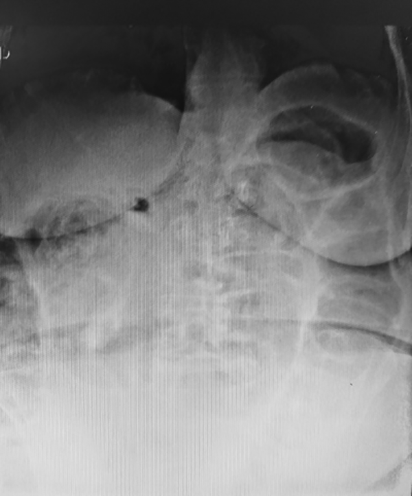 Figura 1: Niveles hidroaéreos colónicos sin aire distal, compatibles con suboclusión intestinal.