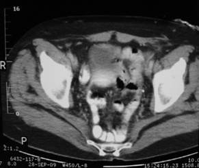 Figura 2. Caso 1: Tomografía computada donde se observa la hernia perineal y su contenido.