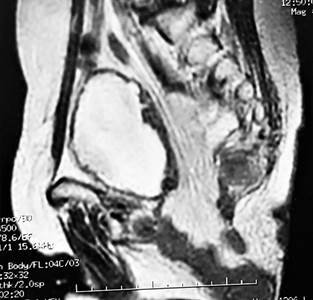 Figura 5. Caso 2: Tomografía computada. Corte sagital que muestra la hernia perineal.