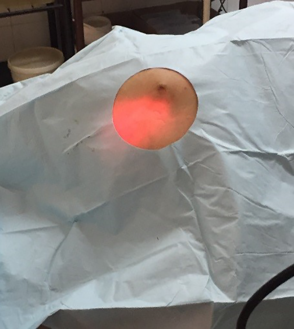 Figura 3: Localización del sitio por videocolonoscopía y transiluminación.